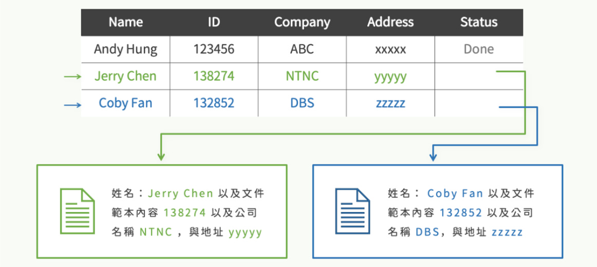 不需要寫程式,也可以自動將資料套用範本生成文件