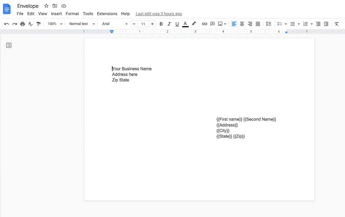 完成第一步驟的 Google 文件範本後,你會有需要帶入參數的清單(姓名、地址…),例 Step 1. 提到的 {{ First Name }}、{{ Address }} … 等。