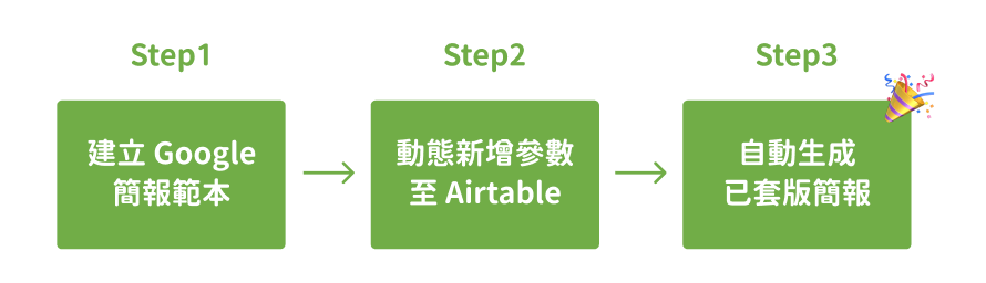 (3) 建立 Google 簡報範本並於其中帶入 (1) 的 Airtable 資料參數