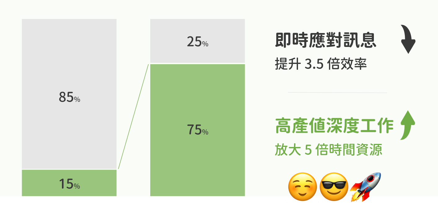 高達 85% 的時間都消耗在「回應別人」這件事上,真正屬於自己的深度工作,只剩下 15%。
