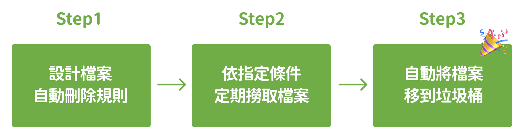在 NoCode 工具中建立「檔案自動刪除規則」,系統便會自動定期排程撈取 「符合規則」 的檔案,並移動至垃圾桶!