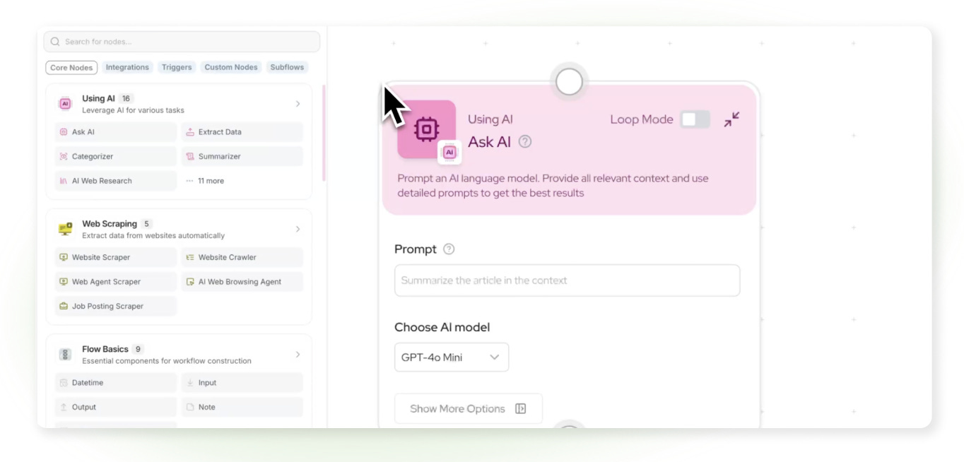 Gumloop 提供一系列 AI 模組,幫你自動完成這些耗時任務,打造行銷和業務流程自動化,確保你能專注在最有價值的任務,如制定策略、建立客戶關係、抓住市場機會。對競爭激烈的市場來說,這不只是節省時間,更是提升業績與反應速度的關鍵武器!
