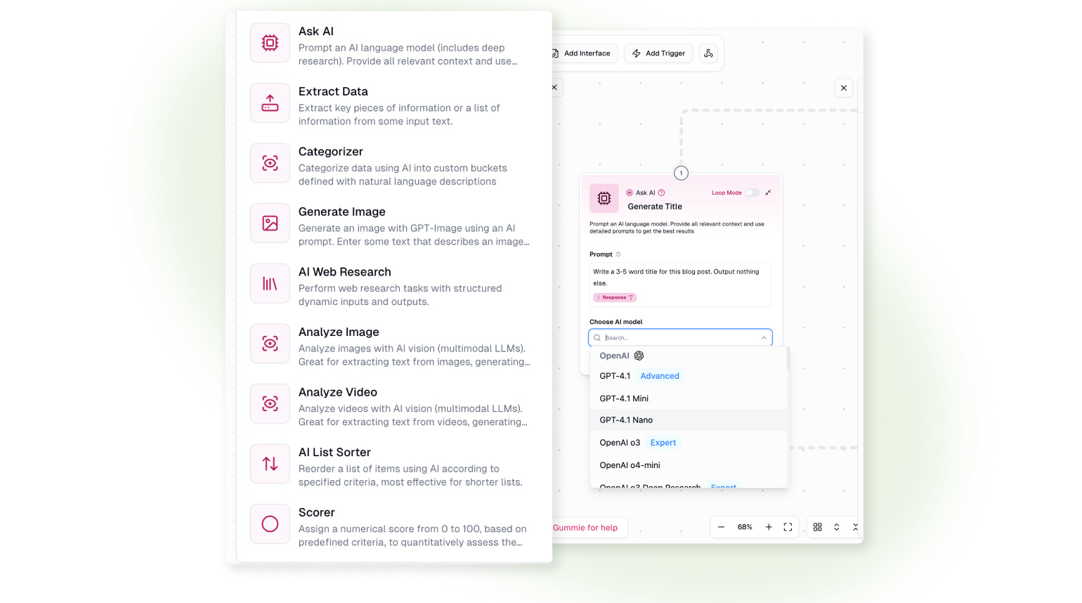 Gumloop 針對這些痛點,提供一系列 AI 模組,讓行銷與業務人員不需寫程式,就能把 AI 與自動化整合到日常流程中,實現高效率、高正確率、高產值的工作模式!
