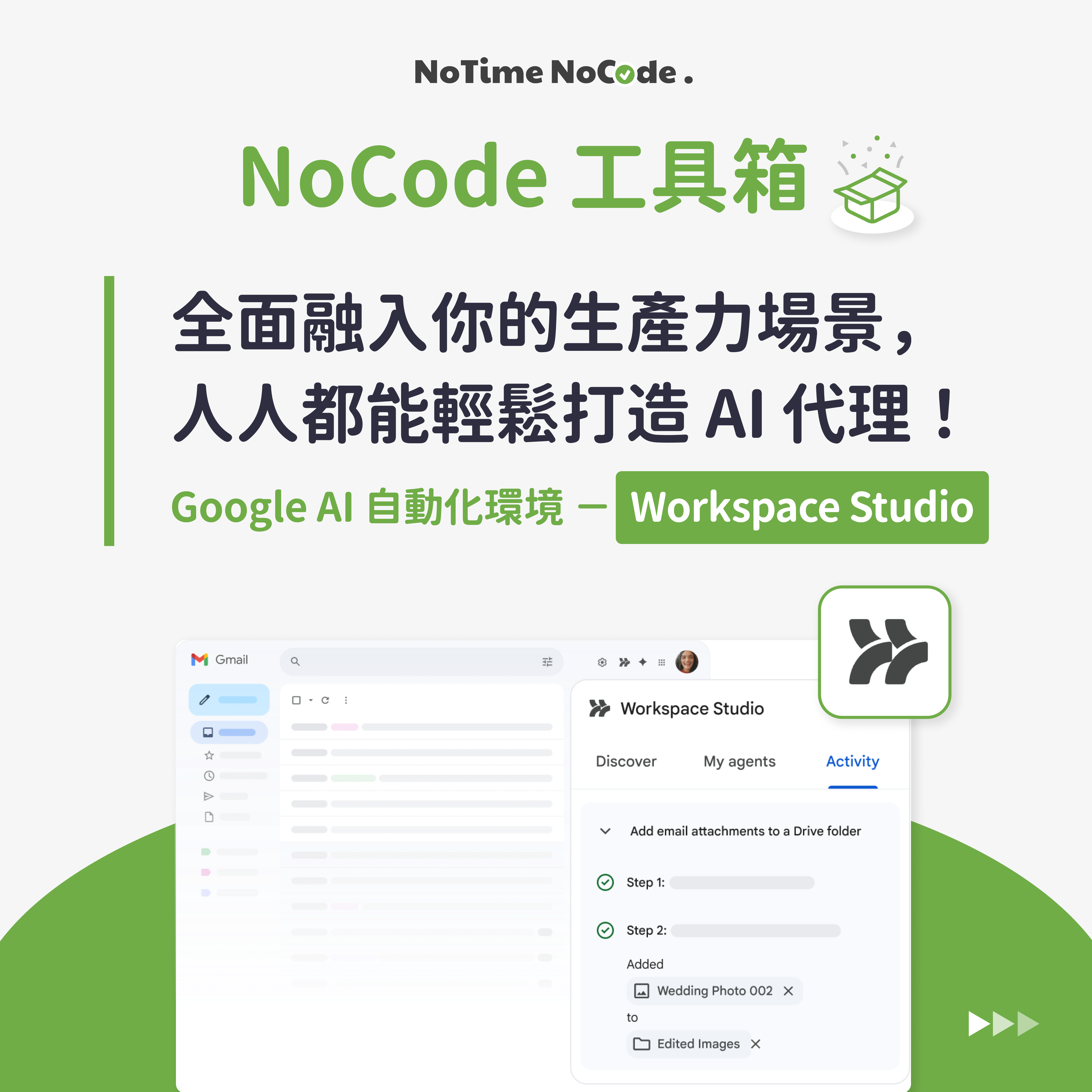 本篇內容是 NoTime NoCode 的 FB / IG 貼文「NoCode 工具箱 - Workspace Studio」的延伸介紹文,如果還沒看過社群貼文的朋友,歡迎前往以下連結查看內容!