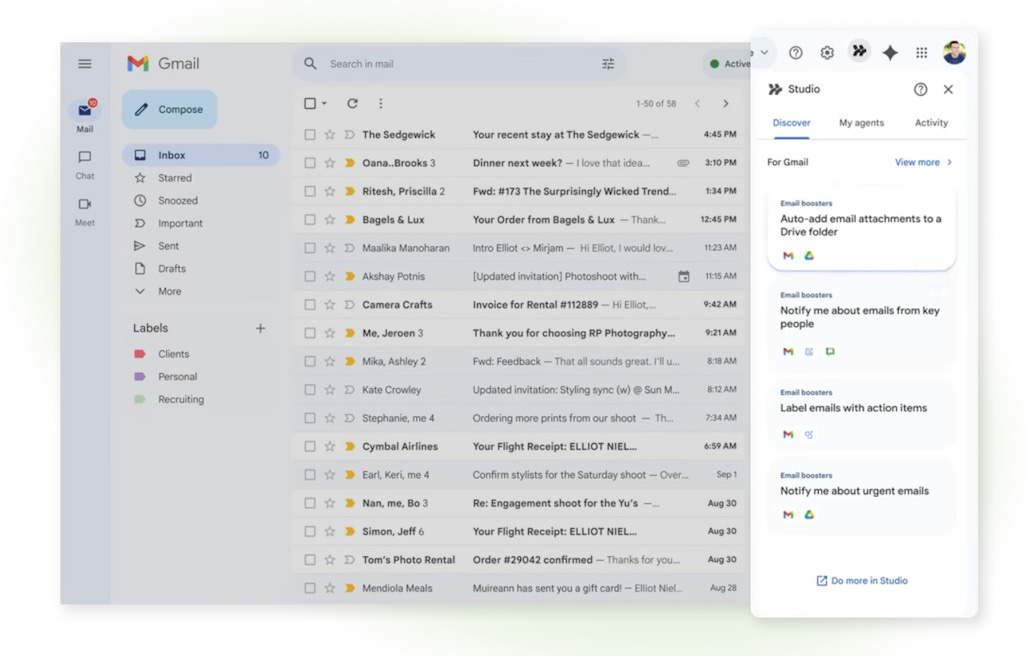 2. 專注 Google 生態系,尚未支援第三方工具:Workspace Studio 目前僅深度整合 Google Workspace 內的服務,例如 Gmail、Drive、Sheets、Calendar、Chat。