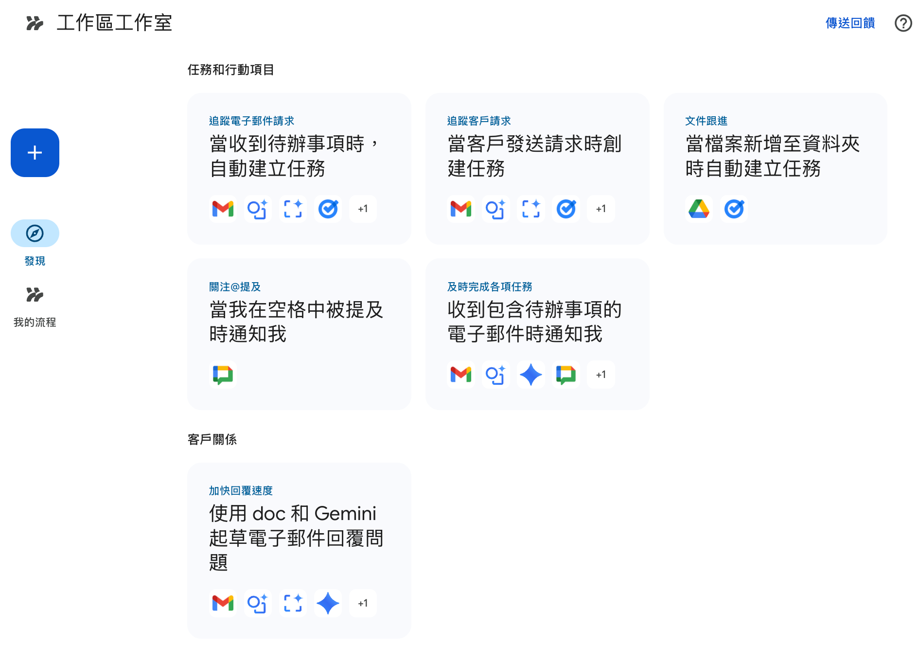 如果你的團隊已經在使用 Gmail、Drive、Chat、Calendar、Sheets,那麼搭配 Google Workspace Studio 提供的自動化範本,等於一開始就站在完成線上。