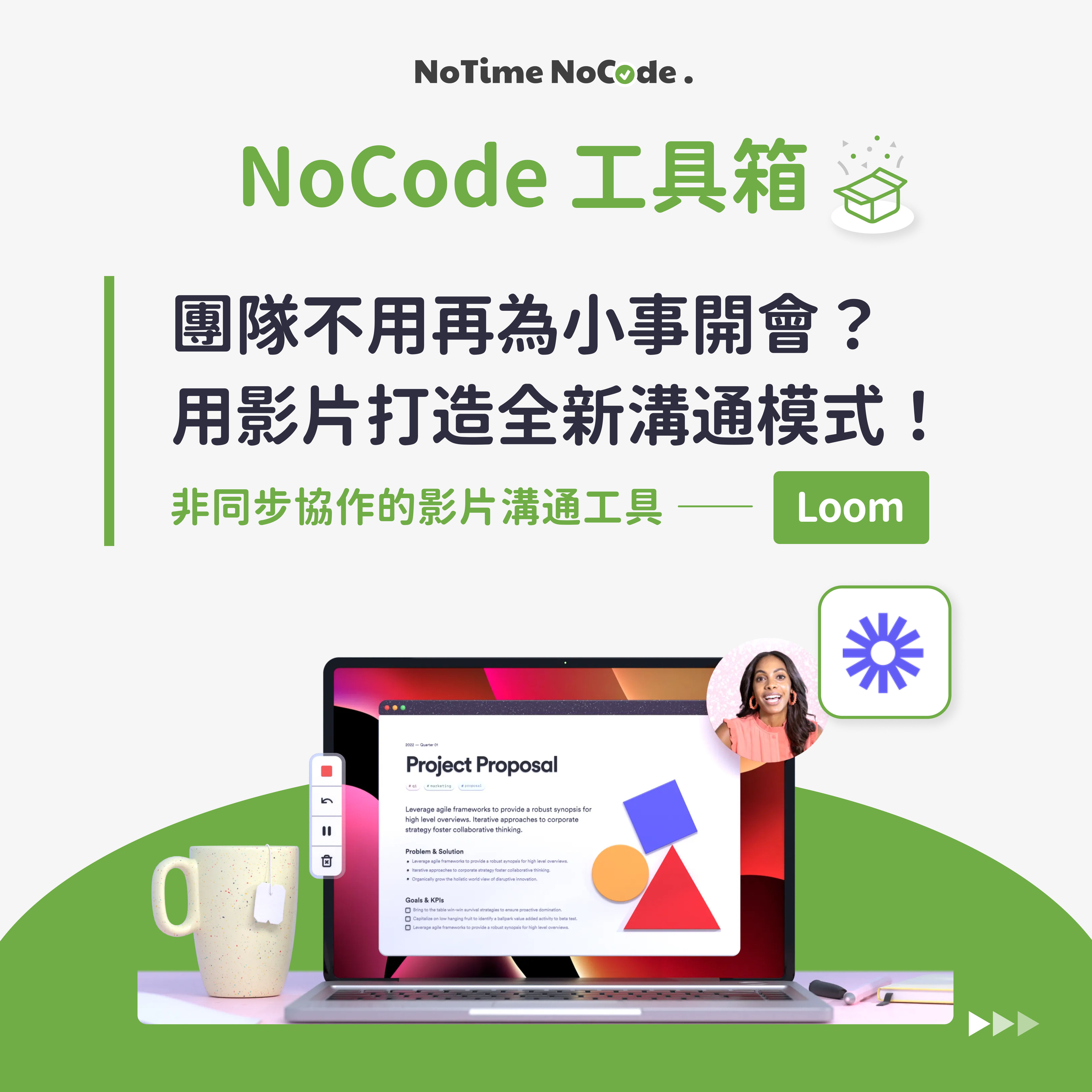 本篇內容是 NoTime NoCode 的 FB / IG 貼文「NoCode 工具箱 - Loom」的延伸介紹文,如果還沒看過社群貼文的朋友,歡迎前往以下連結查看內容!