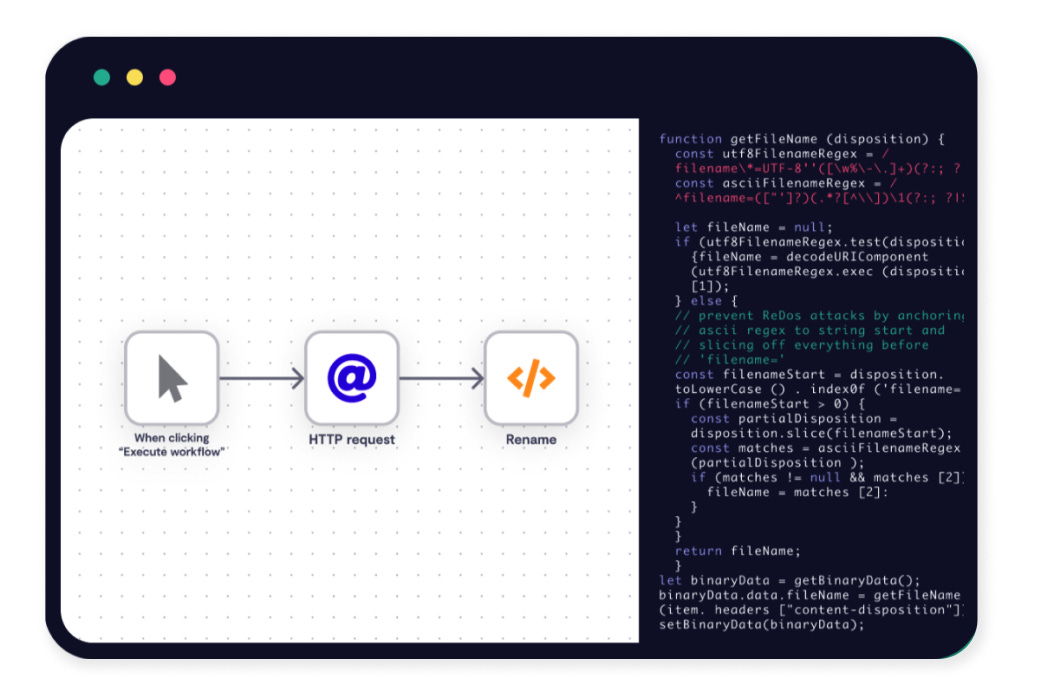 這時候,如果你稍微懂一點軟體程式,n8n 提供了一個解決方案。它允許你在自動化流程中建立一段自定義的程式碼,突破既有自動化模組的限制,實現理想的自動化流程。