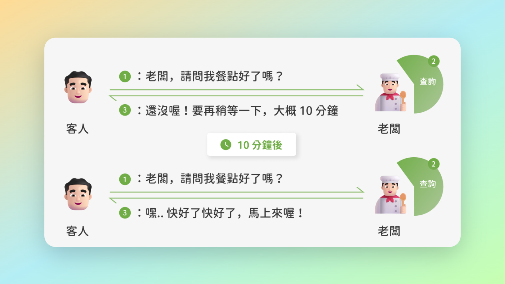 這樣的過程雖然很直接,但如果每次都要問一次才能知道最新情況以及是否可以取餐,感覺是不是有點麻煩呢?