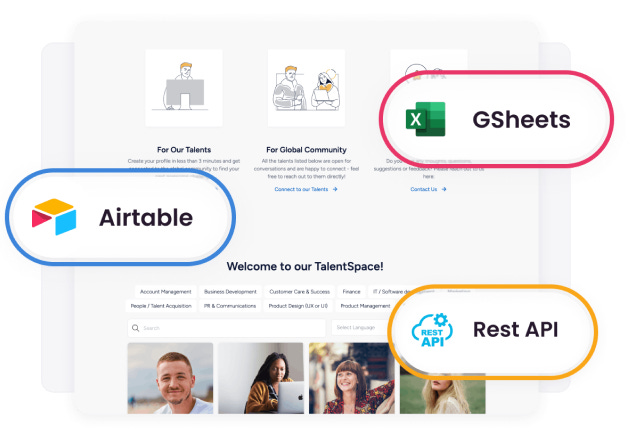 早就已經習慣把資料都放在 Google Sheets 或 Airtable 的資料庫中的我們,當今天要建立一個可以讓訪客與內容互動的網站頁面時 (e.g. 會員系統、統計圖表、庫存管理、內容索引、微型電商),完全不需要再把資料轉移、串接到網站的資料庫中,透過 Softr,即可以直接讓網站存取 Google Sheets 或 Airtable 的資料,方便訪客存取最新的內容資訊!
